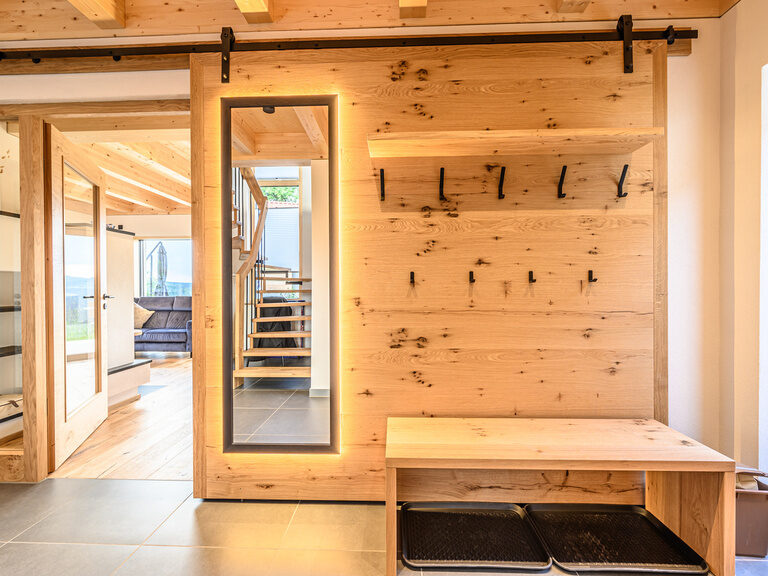 Massivholzmauern und Lehmputz für natürliches Raumklima